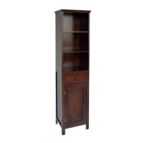 Elite Home Fashions Shelved Linen Tower with Drawer and Cane-Paneled Cupboard, Espresso Feature