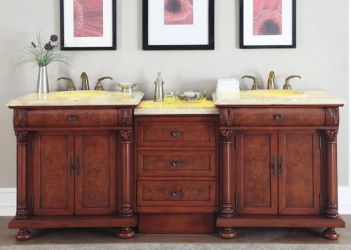 26" Bathroom Furniture Travertine Top Double Sink Vanity Cabinet 714T Review