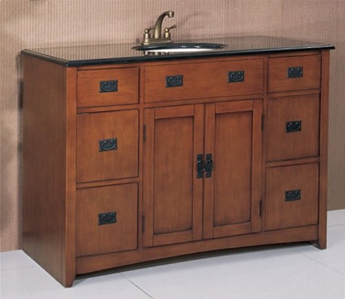 This Cherry Vanity Cabinet has a grand presence in the room, with a tone of style and sophistication that surpasses all others! The design details include framed doors and drawers and beautiful carvings on the side posts. Made of wood and MDF, this bathroom vanity has a dark cherry finish, a granite top and a white ceramic undermount sink. Four functional drawers and a large cabinet offer ample storage for personal items, bath supplies and cleaners. Faucet NOT included. Matching Vanity Mirror available. Assembly level/degree of difficulty: No Assembly Required.
